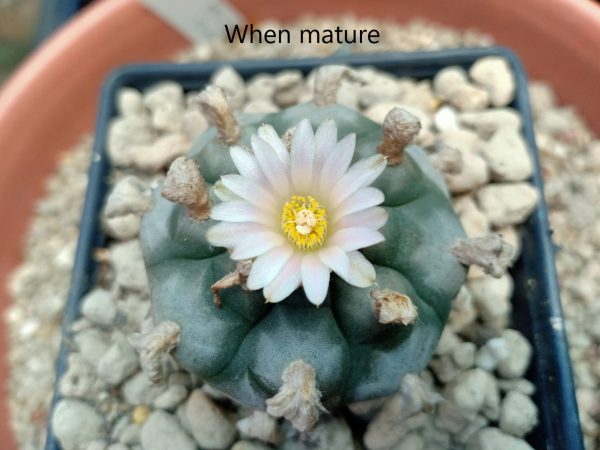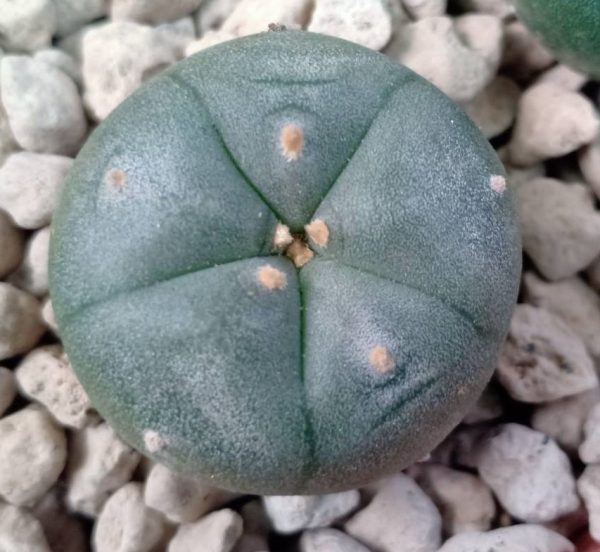 Healthy mature peyote cactus button, 2.5 to 3cm diameter. This plant is already mature, so it blooms with a beautiful flower and also after that it can produces a fruit with some seeds (if nature decides to do so).