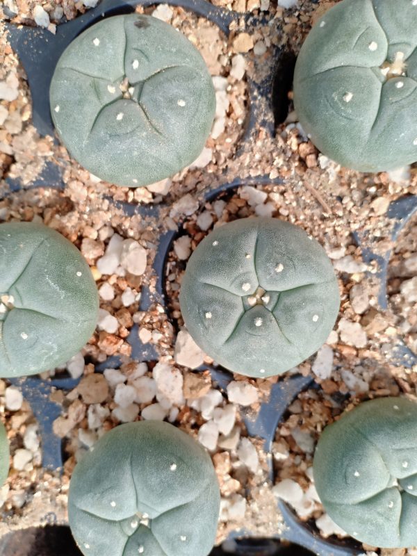 Healthy mature peyote cactus button, 2.5 to 3cm diameter. This plant is already mature, so it blooms with a beautiful flower and also after that it can produces a fruit with some seeds (if nature decides to do so).