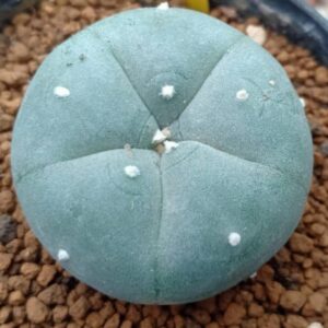 Healthy mature peyote cactus button, 2.5 to 3cm diameter. This plant is already mature, so it blooms with a beautiful flower and also after that it can produces a fruit with some seeds (if nature decides to do so).